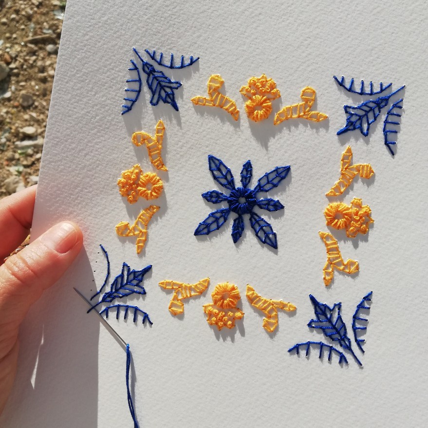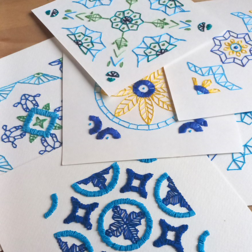 A proposta desta oficina é refletir e experimentar a relação entre a azulejaria urbana e o bordado, seus encontros e desencontros. A partir da observação do azulejo como elemento arquitetônico, histórico e gráfico, o bordado em papel surge como um atravessar, perfurar, costurar, ressignificar.