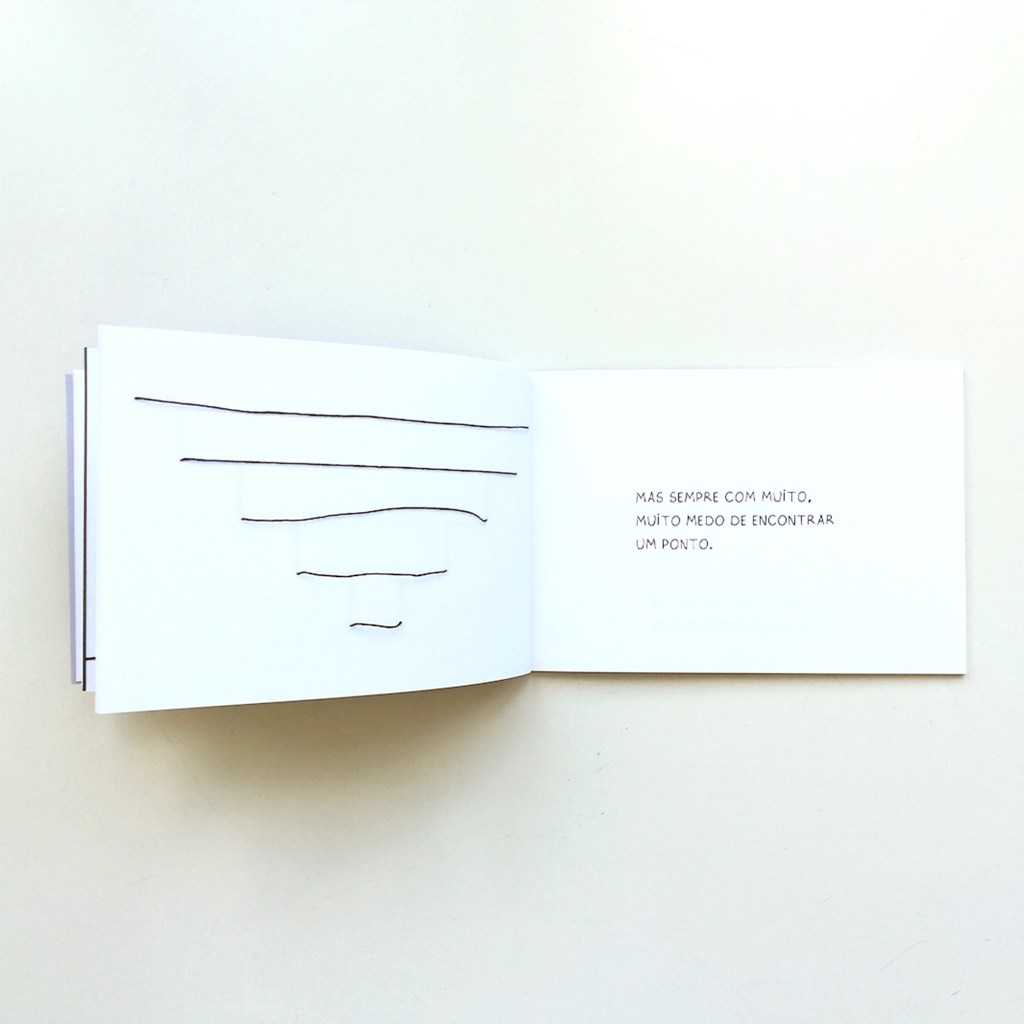Fui convidada a ilustrar esse percurso — uma linha que, ao atravessar o papel, é obrigada a encarar o seu próprio medo. Nos meus bordados, ela se enrola, hesita, avança, tropeça e se transforma. Cada ponto é também um passo de coragem, onde a linha descobre novas formas de existir.
