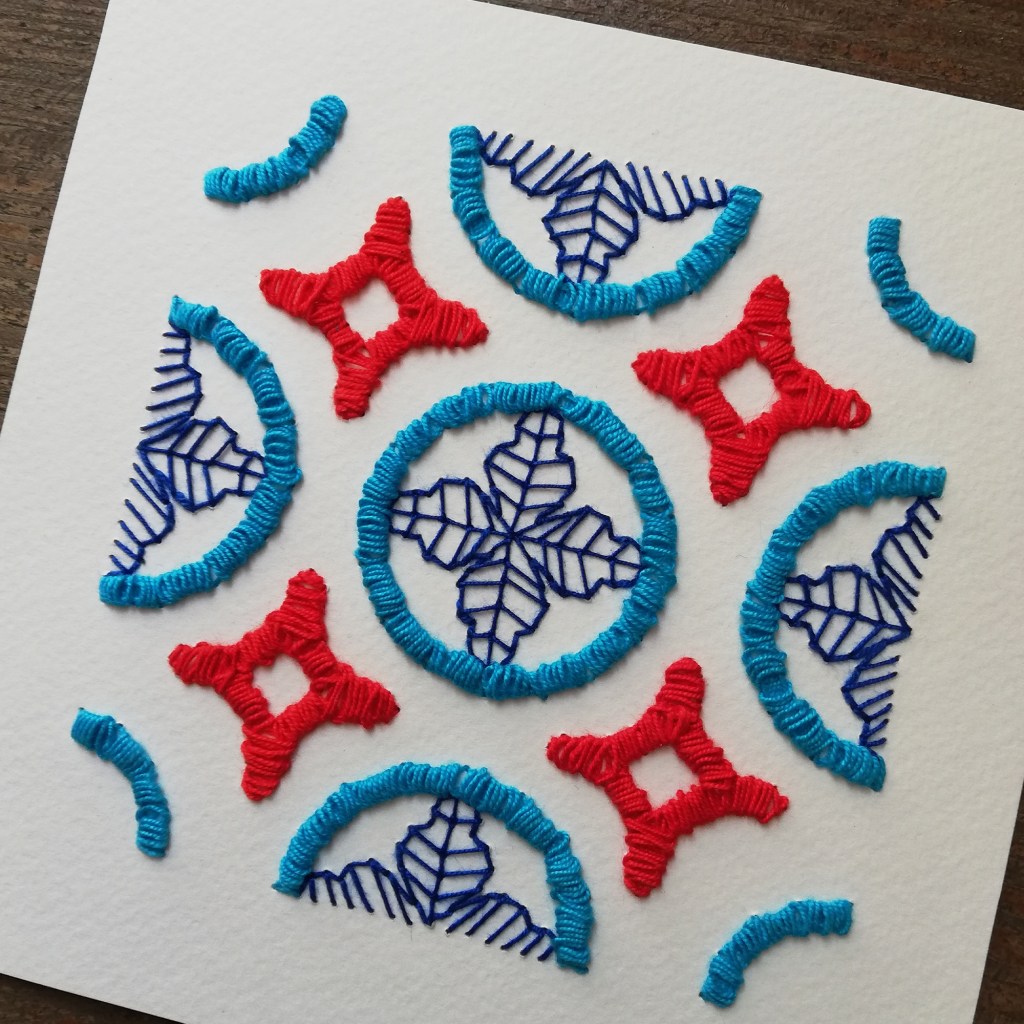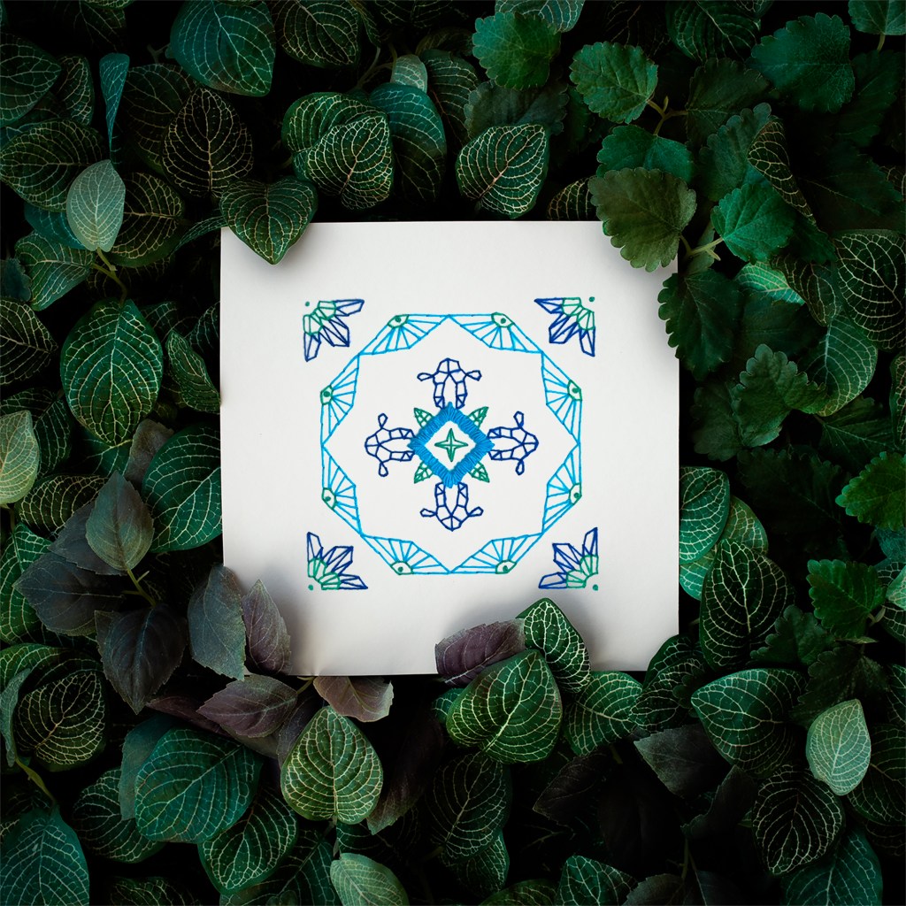 Em caminhadas por Lisboa, comecei a observar e a registrar detalhes do quotidiano como janelas, tendas, estendais e, sobretudo, azulejos. Desse perder-se atento entre grafismos e padrões nasceu uma série de azulejos bordados em papel.
