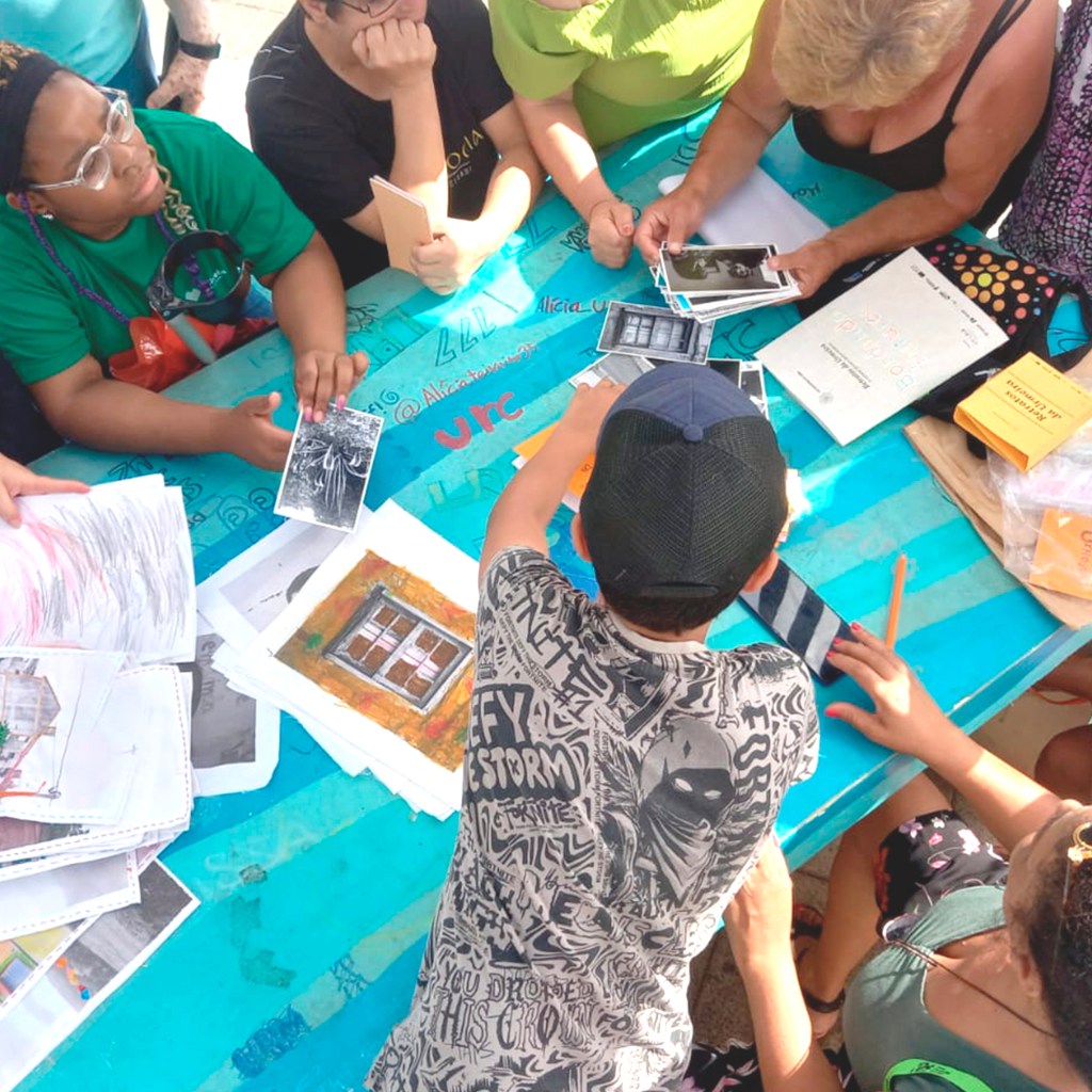 Bordando Futuros é um livro que nasce de uma série de encontros realizados na Urmeira, entre março e abril de 2025. Ao longo dessas sessões, os moradores foram convidados a pintar e bordar fotografias do bairro, impressas a preto e branco sobre tecido, transformando imagens do presente em gestos de afeto e projeção de futuro.