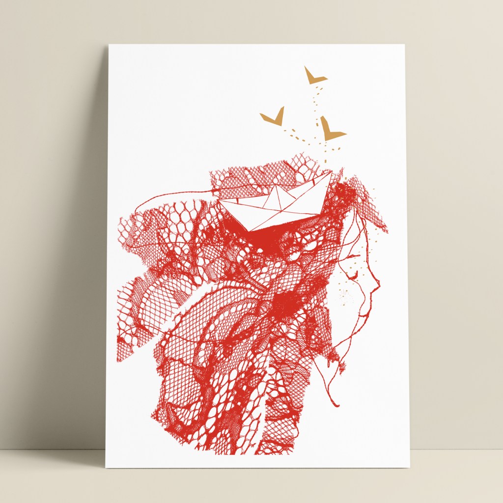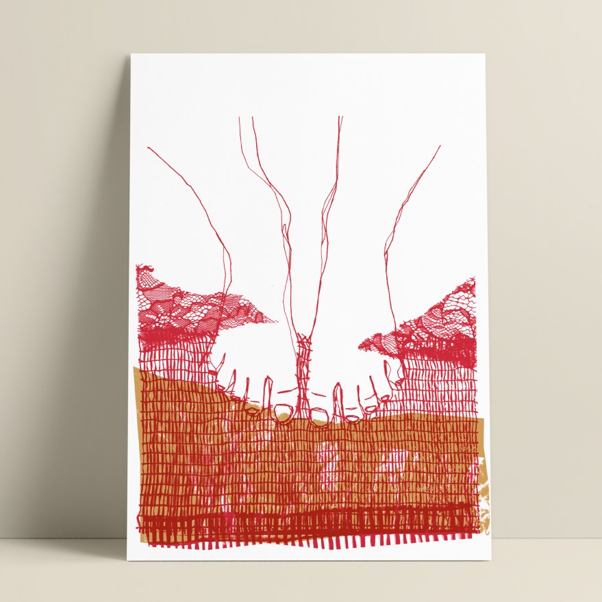 Rendas, memórias, casas e corpo impressos em serigrafia.