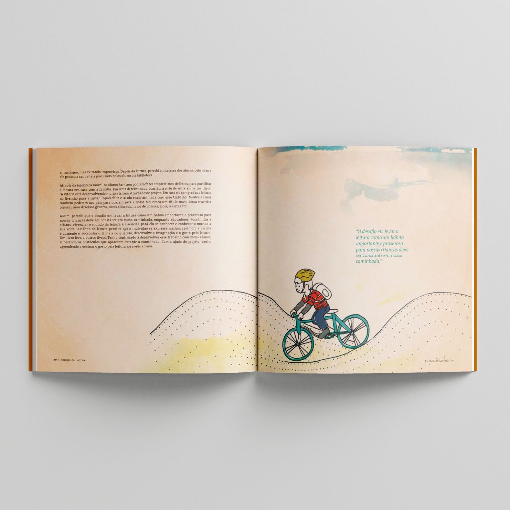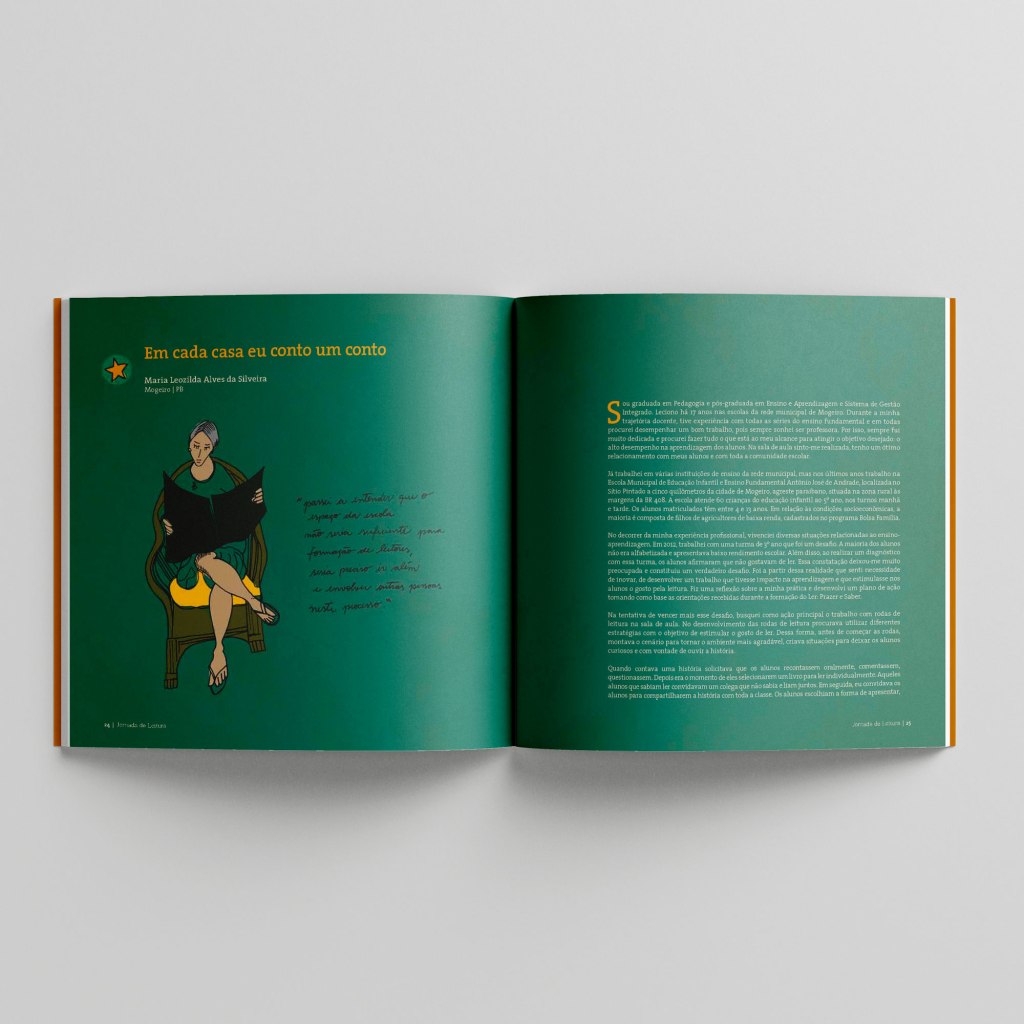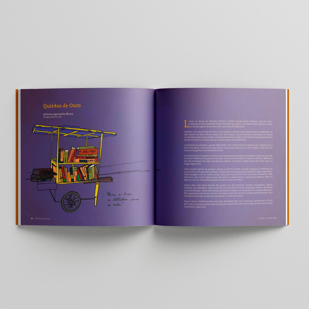 Projeto gráfico e paginação do livro Jornada da Leitura: práticas exemplares, publicado pelo Instituto Camargo Corrêa. A publicação reúne 22 relatos de práticas desenvolvidas por professores do Ensino Fundamental de redes públicas municipais, além do resumo dos três planos municipais vencedores da Jornada da Leitura.