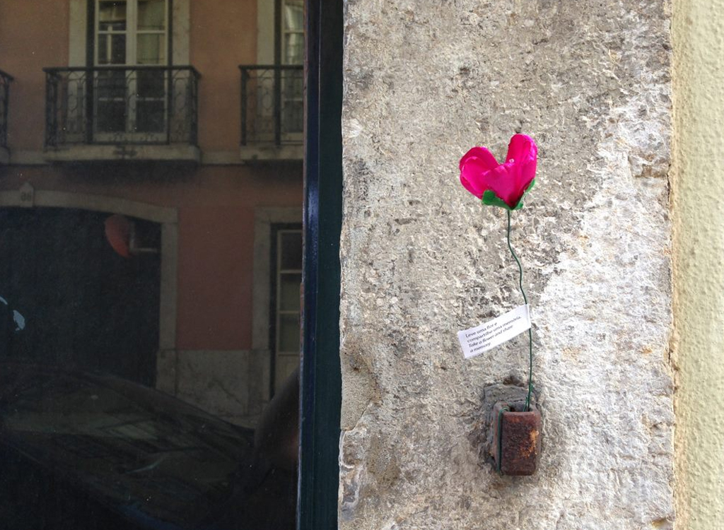 Por Onde Flor é uma intervenção urbana realizada em Lisboa, que percorreu a Rua das Flores, do nº 58 da Rua São Paulo até o nº 5 da Praça de Camões. Uma série de 30 flores convidava transeuntes a participar do gesto simples e poderoso de levar uma flor e partilhar uma memória, seja ela de quem habita a cidade ou de quem por ali passa.