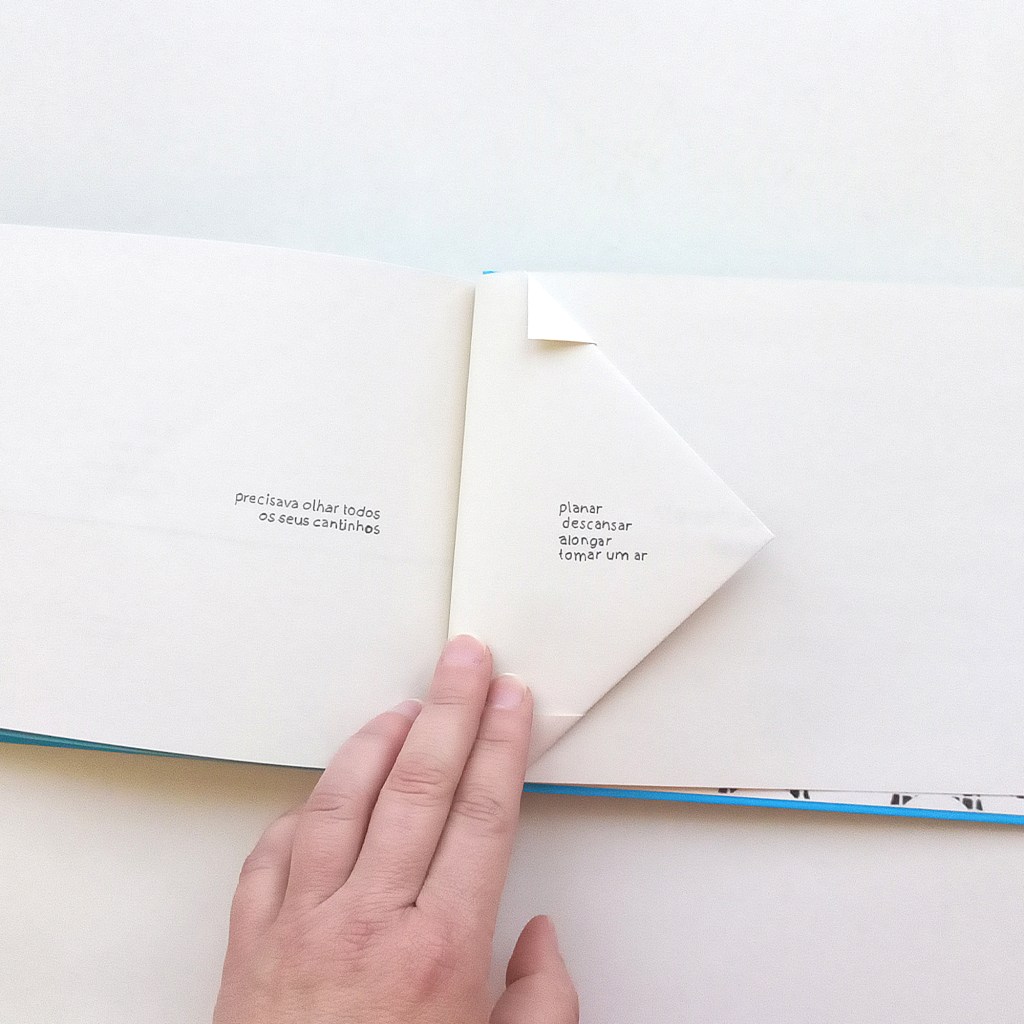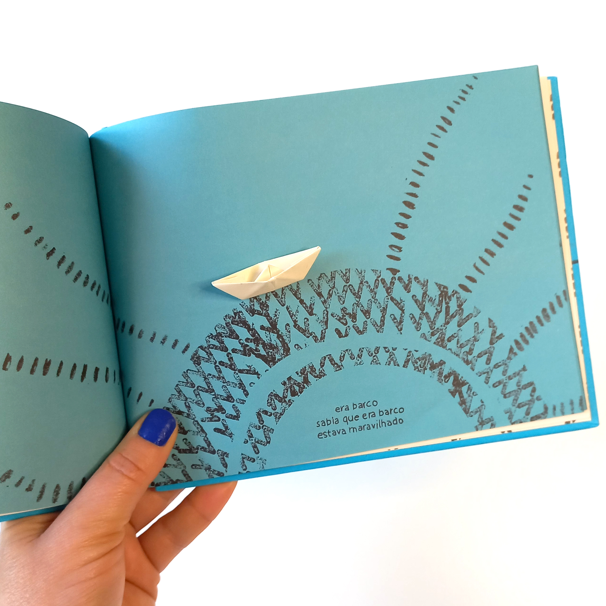Neste livro, acompanhamos o percurso de uma folha de papel que queria ver além, de um barco que navegava por mares e medos — e, depois… só mergulhando na história para descobrir. Estruturado em três capítulos — dobrar, atravessar e desdobrar — é um livro para folhear, ler, manusear e sentir.